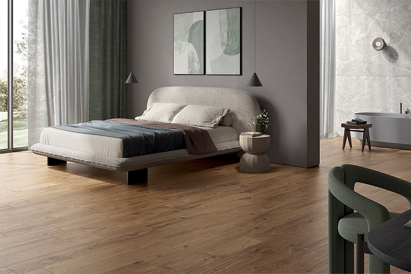 20×120, 30×30, 30×120, 60×120, 90×90 — это позволяет реализовать проекты любой сложности: от строгой геометрии в общественных зонах до мягких сочетаний в домашней обстановке.